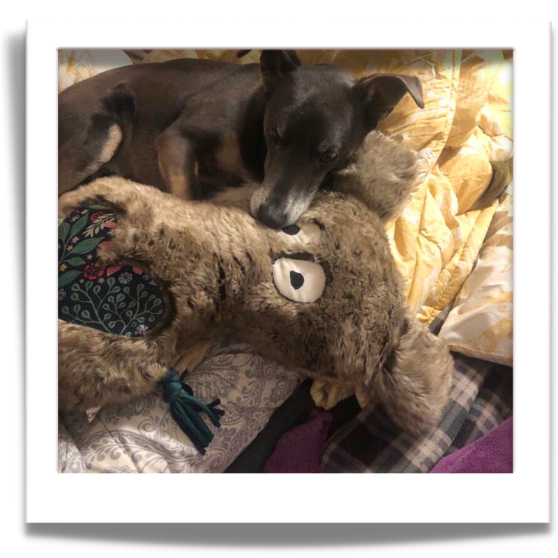 Your product is truly cute in its ugliness… our Caro loves her new friend and sleeps with it every night.