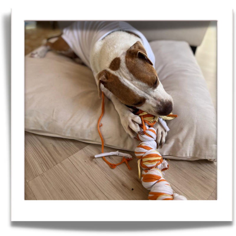 Each rope is individually knotted to deliver unmatched durability, flexibility, and long-lasting fun. Whether it’s for fetch, tug-of-war, or solo chewing time, this recycled fabric dog toy helps support dental health while keeping your pup active and happy.